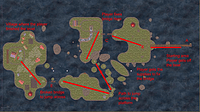 Top down map of the level A is the start B where to gather the resourses C The first bridge D The rock pathway E The final bridge F The village destination...